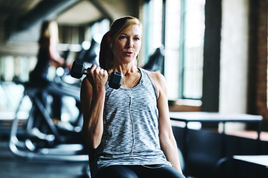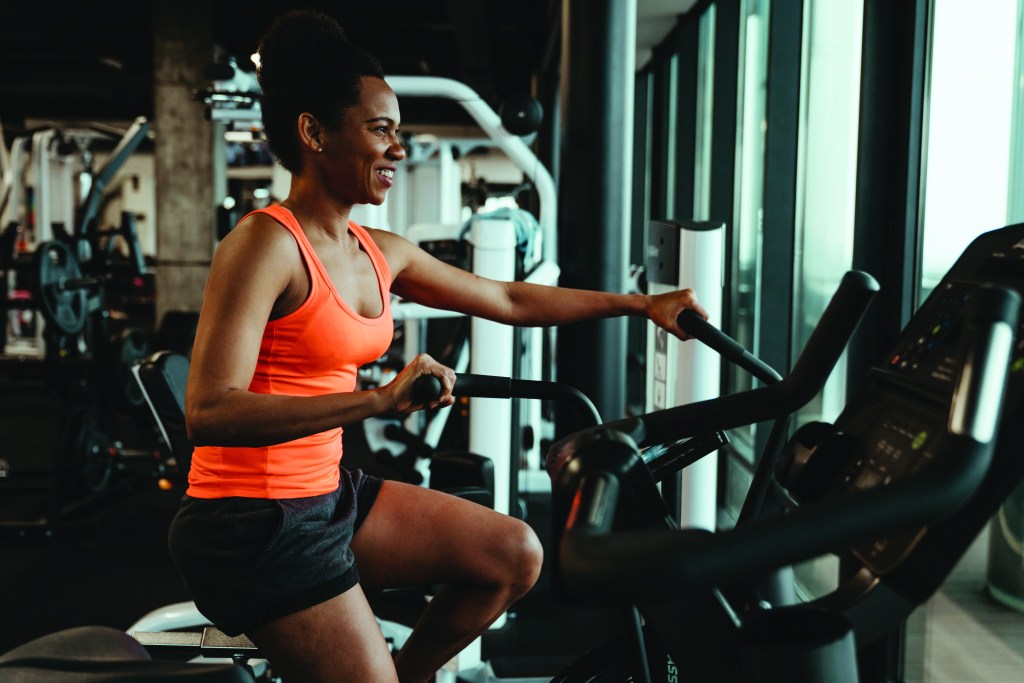 Choose low-impact machines such as the assault bike, bike, rower, SkiErg or incline walking on a treadmill. You’ll be able to work hard without putting unnecessary stress on your joints.